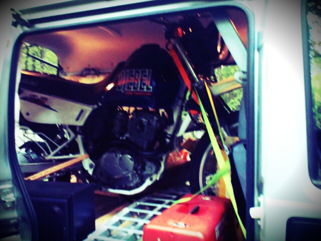 さらに車からベッド下ろしてベルトやらロープやらラダーやら工具やら必要そうなものは全部積んだ。