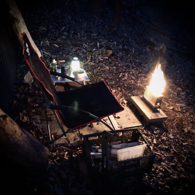 先週に片付けて確保した裏庭のキャンプコーナーでさっそく遊ぶんだもんね!