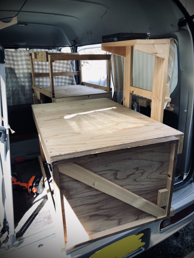 アクティバンの据え付け自作車中泊ベッドなんですけどね。