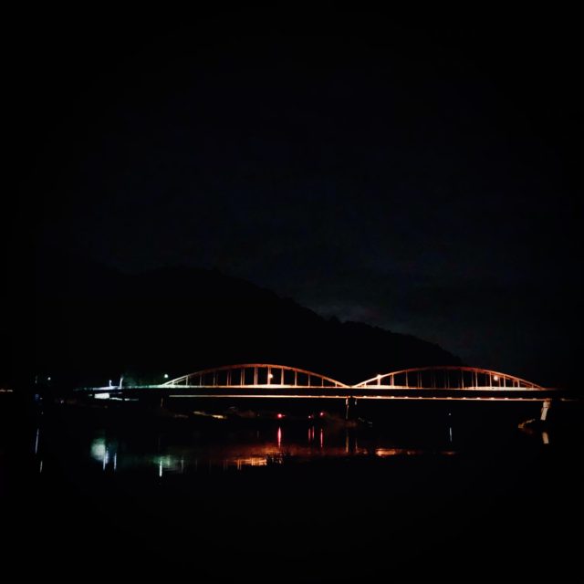 ここは川面に映る明かりがなんだかいい感じ。