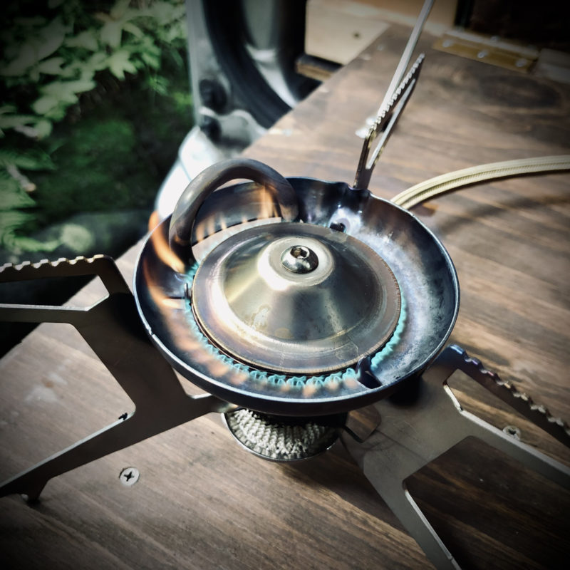 しばらく燃やしてたら、バーナーにへばりついてたプレヒートのススが剥がれてきた。