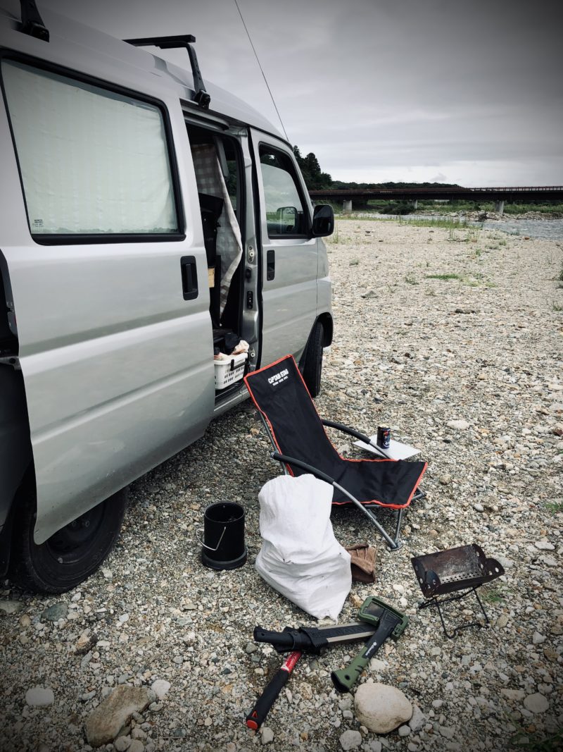 熾火になったら素直に火消し壺に放り込んで車に引っ込む。