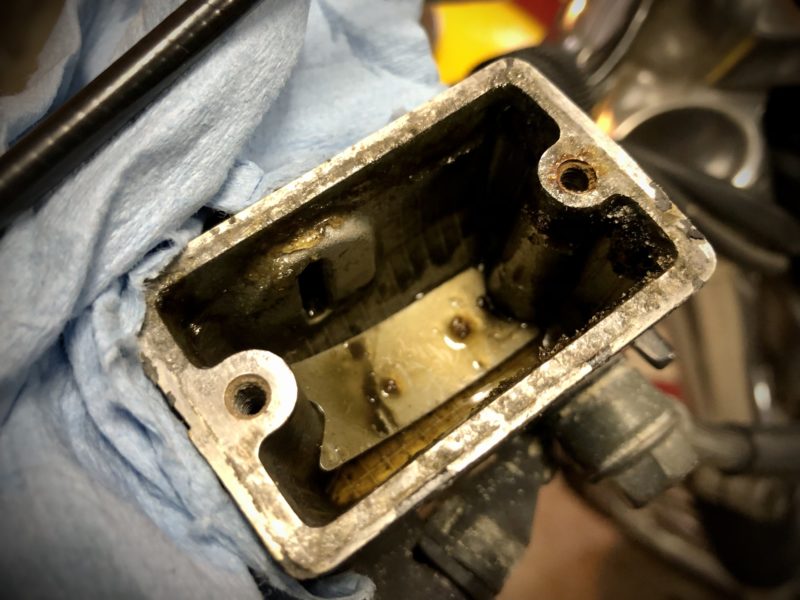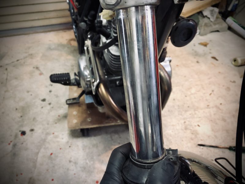 んじゃフォークオイル抜くかなとキャップ開けたらクリップで止めるタイプだった。