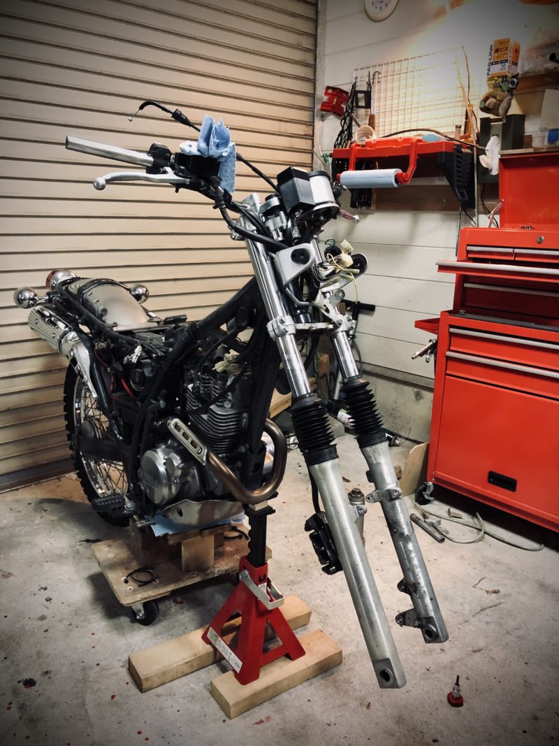 スロットルワイヤ、クラッチケーブル外す。
