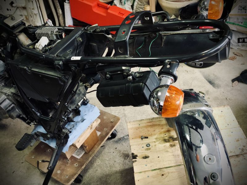 その後にスイングアームのサビ落として足付けしてからカラーだのブッシュだの交換、そして塗装。