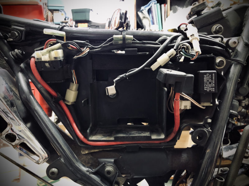 まずはバッテリケースの配線をホルダから外してフリーにする。