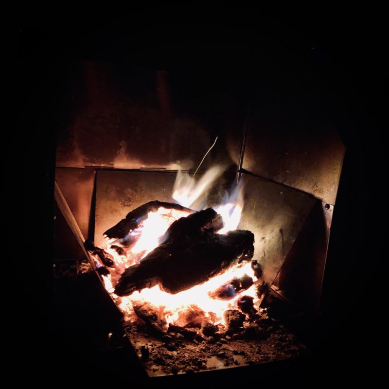 これまたぶっとい薪をそのまま突っ込んじゃったから火を維持するのに目が離せなくて常にいじくり回してなんだか忙しい。