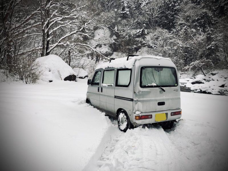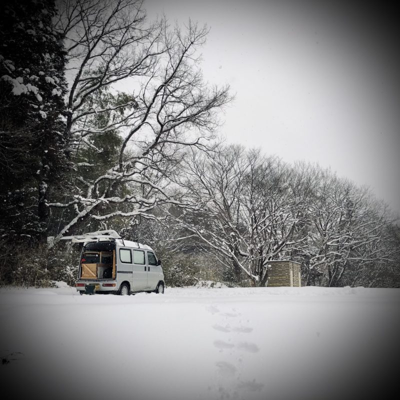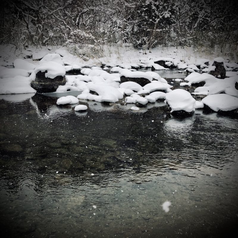 さすがに無理そうな積雪量だったのでいつもの河原に変更。