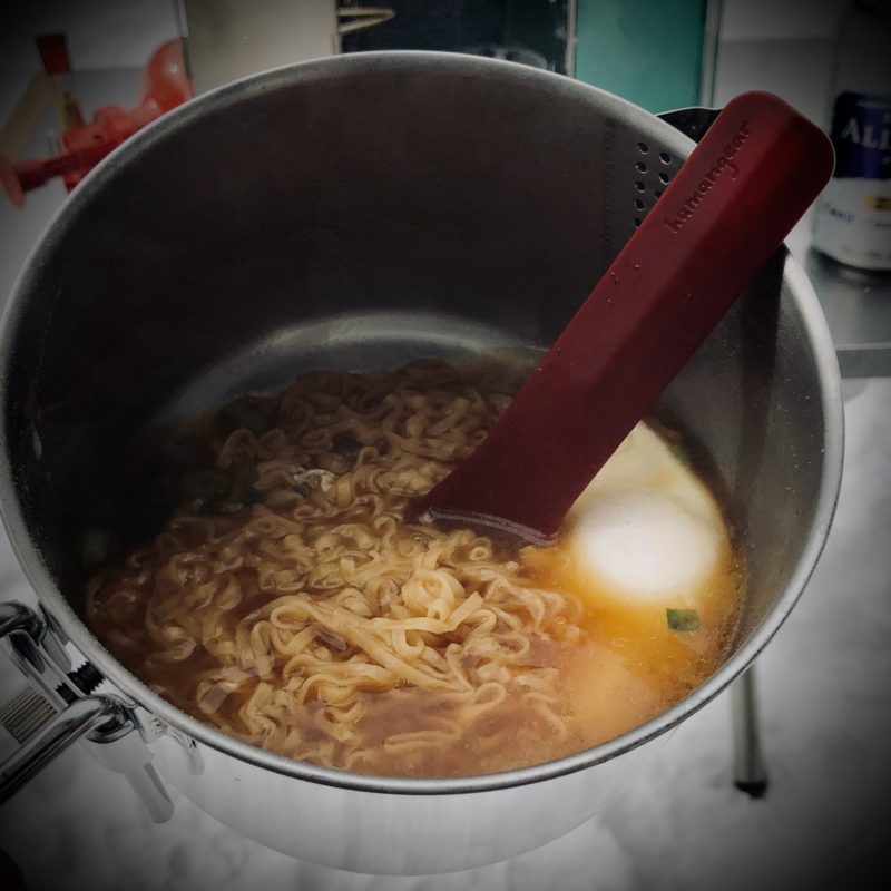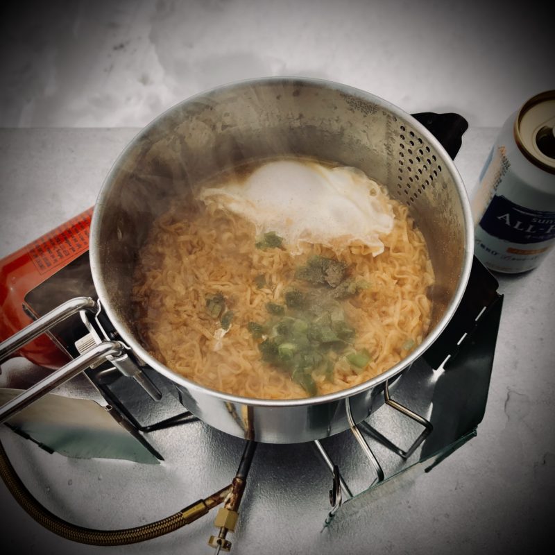 チキンラーメン入れて玉子割り入れて蓋して1分。
