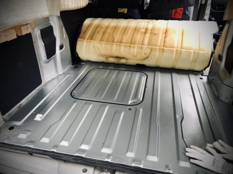 車中泊ベッドを分解して下ろしたらカーゴのシートを引っ剥がす。