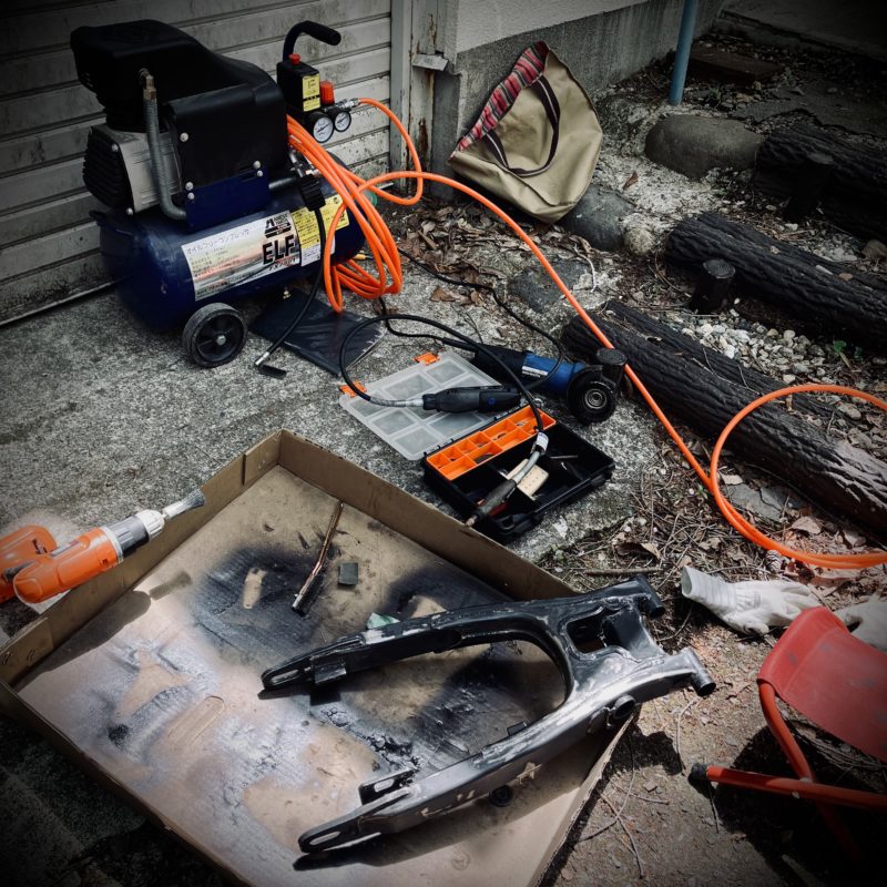 いよいよ一番やりたくないスイングアームの下地作り。