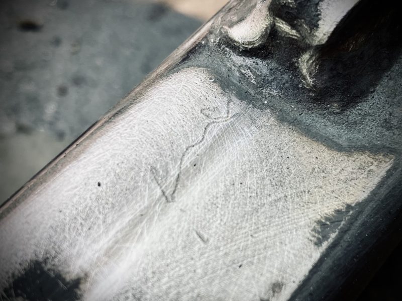 ちゃんと処理しておかないと、塗り直した塗装の下でまたサビが進むこと請け合い!