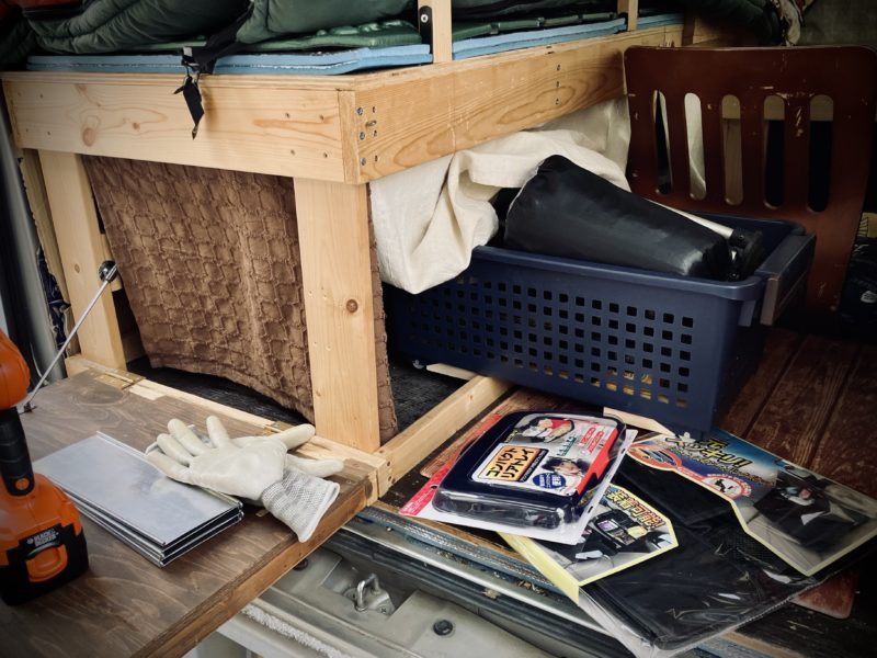 あとなんちゃってギャレー横のリアウインドウ部分がまるっと無駄なスペースになってるクセにティッシュ置き場が決まらないからシートポケットを追加。