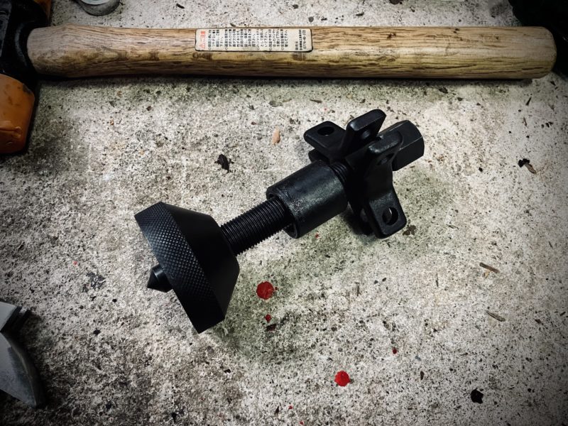ピボットカラーをソケットコマ当ててプラハンで叩き抜く。