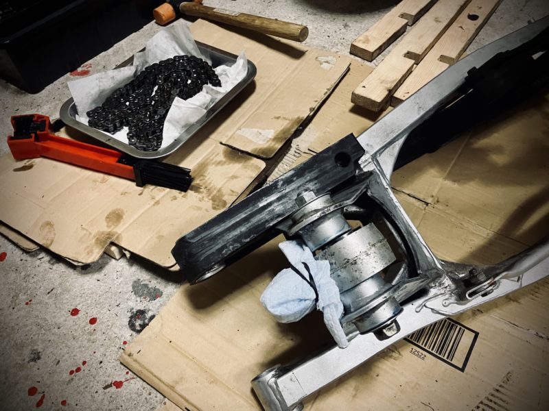 全部のリンクをクニクニ動かして固着が無いか確認しつつオイルを馴染ませる。