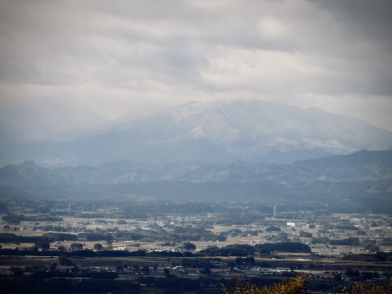 遠くの山はうっすらと雪化粧。