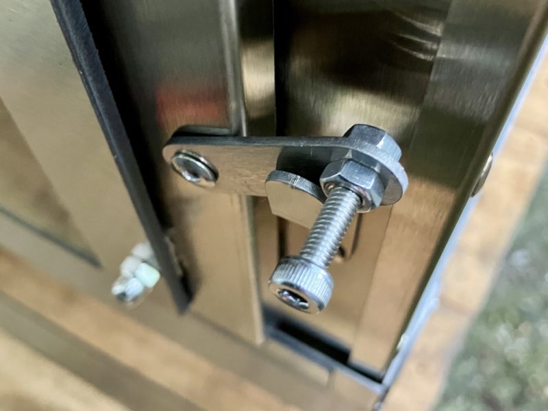 これでガラスを押さえといて、さらにワッシャもいれてドアとガラスの間に1.6mmの隙間を作るのだ!