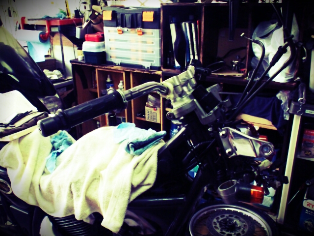 帰っていろいろ片付けてからガレージでぼんやりしてたけどまだ時間あるなーとおもむろにハンドルいじる。