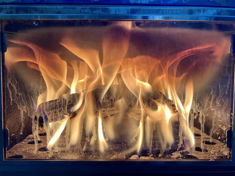 台風が離れつつあって風が強くなってきて煙突吹き返し気味だけど安定しちゃえば問題なし!
