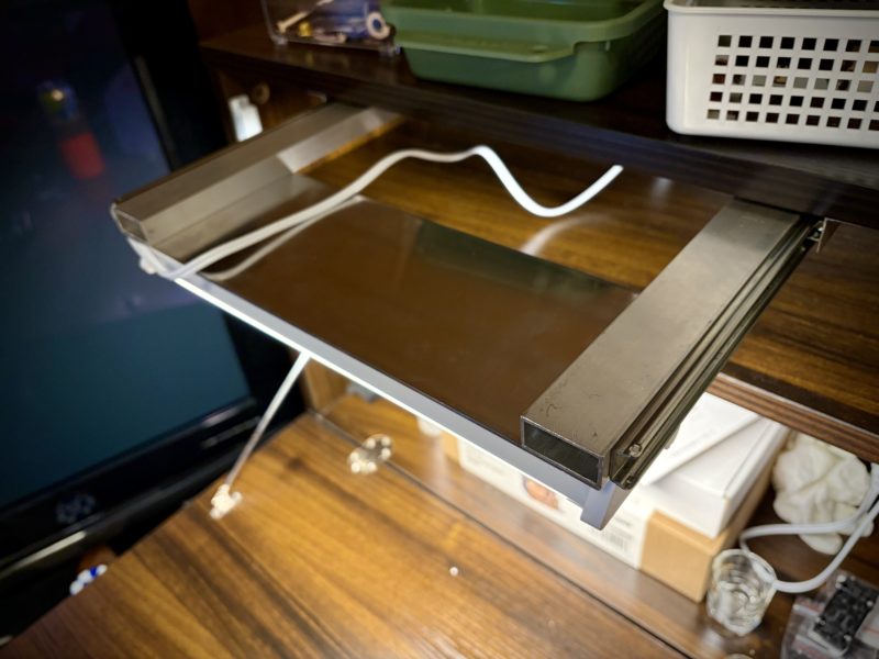 で、LEDのデスクライトを物色してたんだけど、何しろ狭いからうまく収まるものがなかなか見つからない。